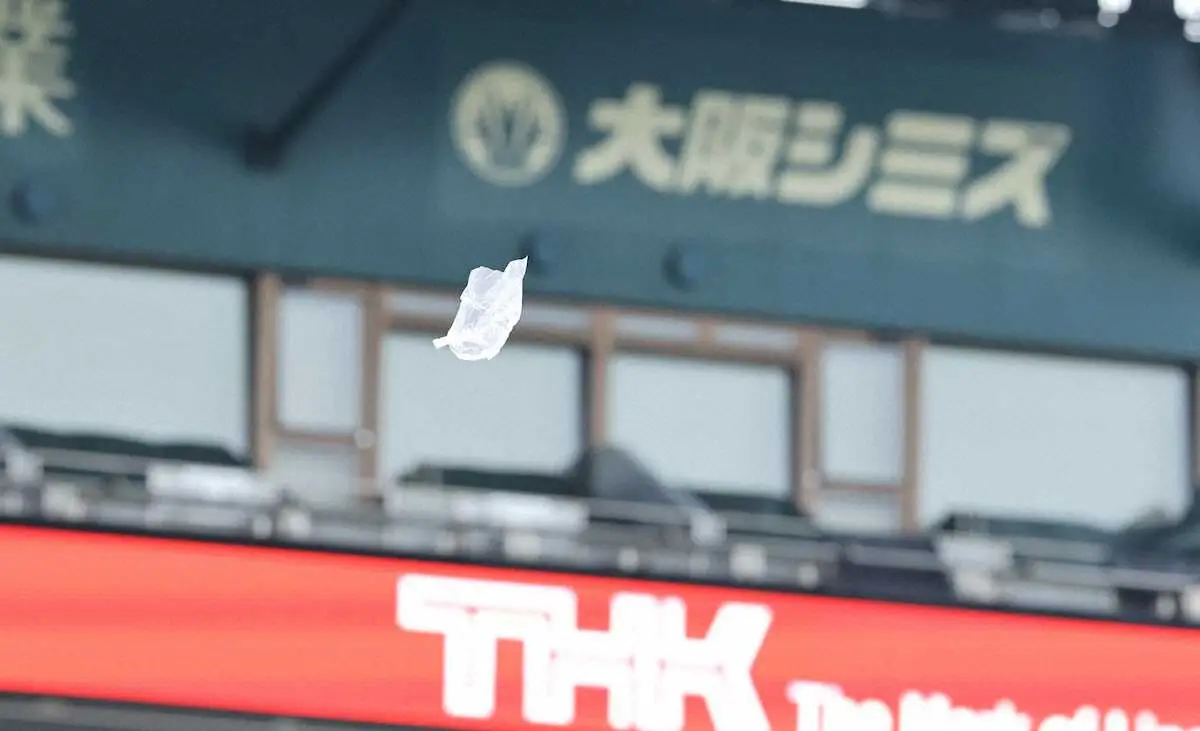 すると空からビニール袋のようなものが、フワフワと風に乗ってグラウンドに落ちてきた。一時試合が中断したものの、球審がナイスキャッチ。スタンドの拍手喝さいを浴びた。