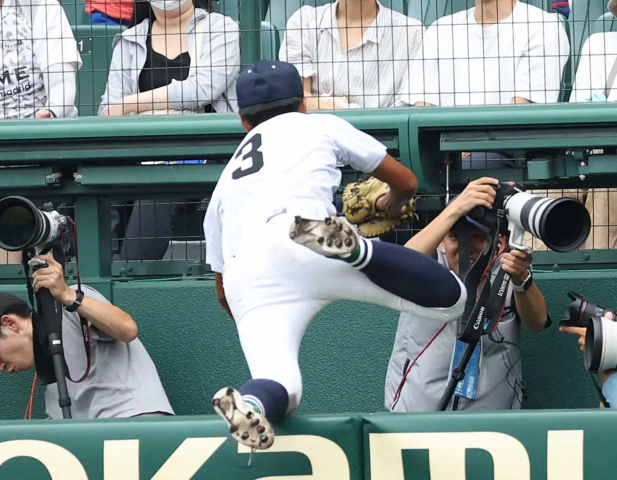 【甲子園】佐賀北・宮崎がスーパーキャッチ! フライ追って頭からカメラマン席へ ボール離さず大歓声