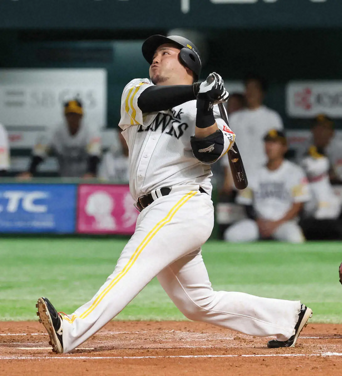 7月29日の日本ハム戦で先発・山崎から放って以来の一発で17号とした。万波(日本ハム)とリーグ2位で並び、21本でトップに立つレイエス(同)と4本差とした。小久保監督も「ちょっと嫌な点の取られ方の後だったし大きかった」と流れを引き戻した同点アーチに感謝した。