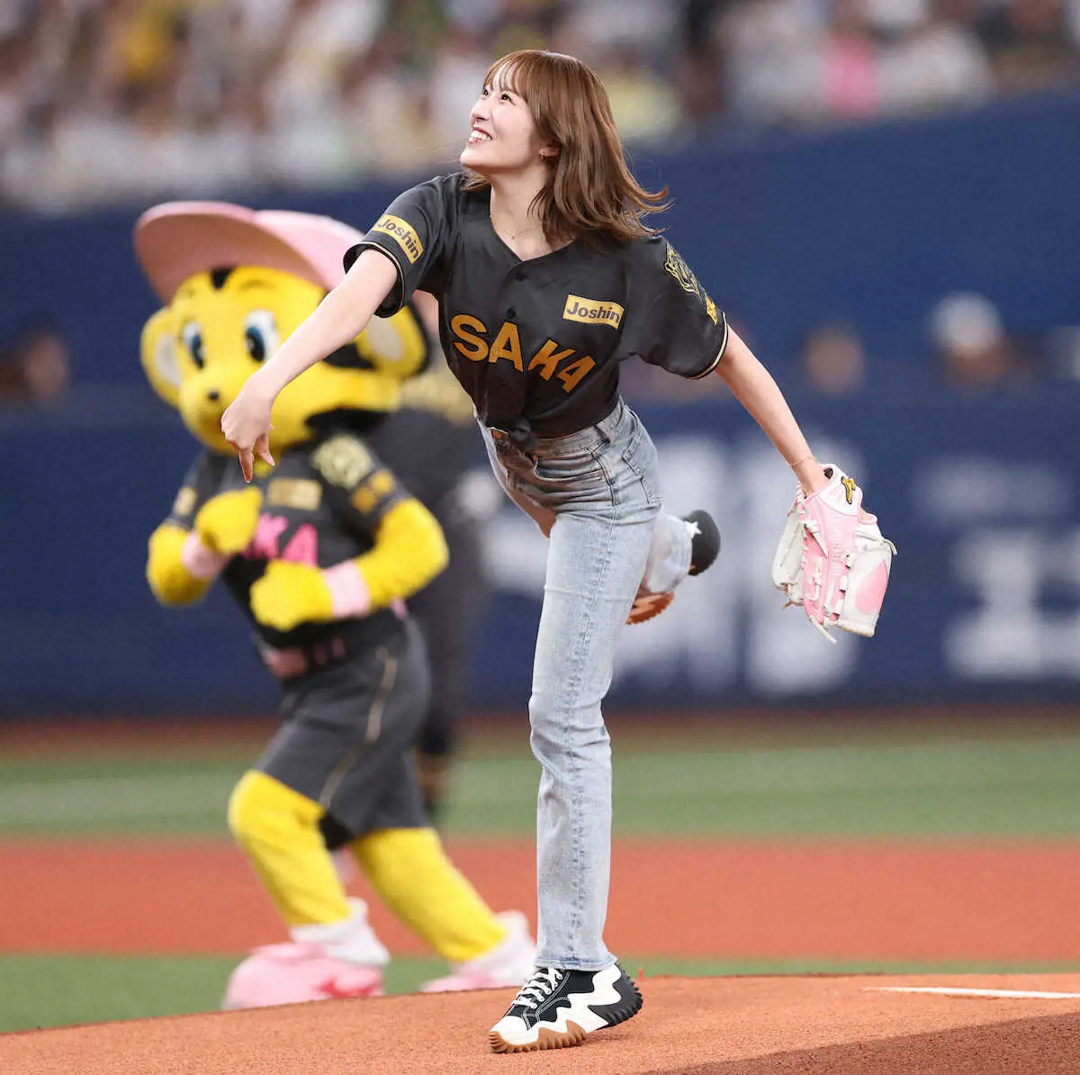アイドルグループ・NMB48の小嶋花梨(26)が、阪神―ヤクルト戦で始球式を行った。大観衆の声援を浴びながらマウンドへ上がり、ワンバウンド投球を披露した。
