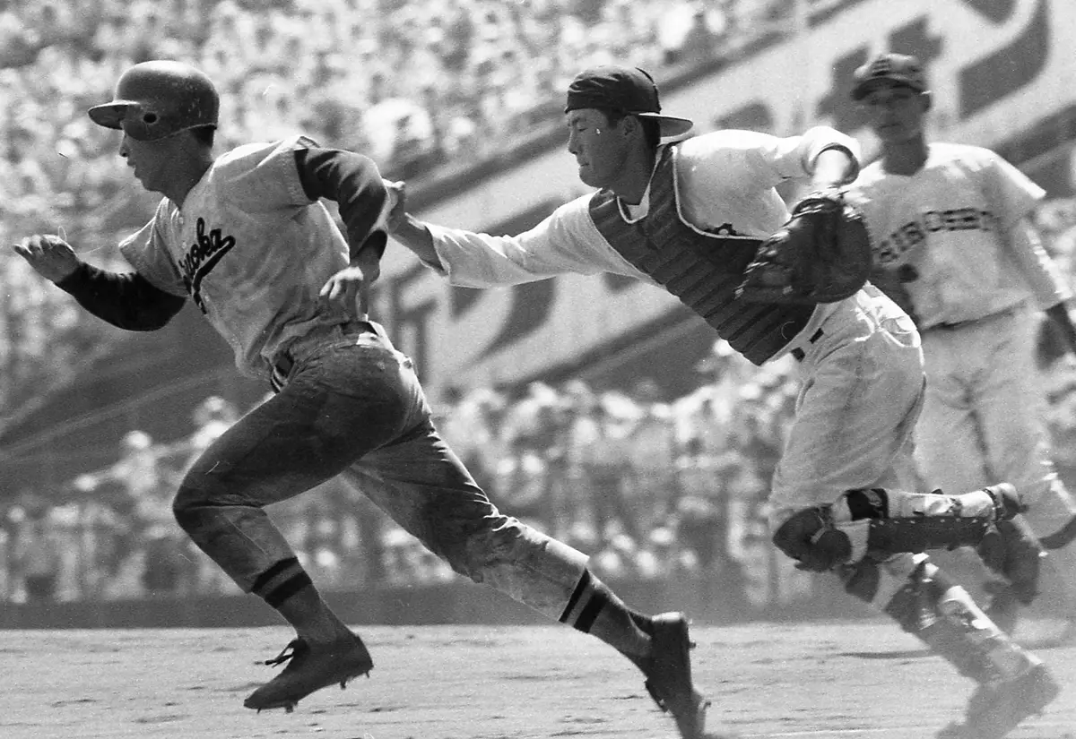 1973年夏の甲子園で達川光男(右)ら広島商は静岡を決勝で破って頂点に立った