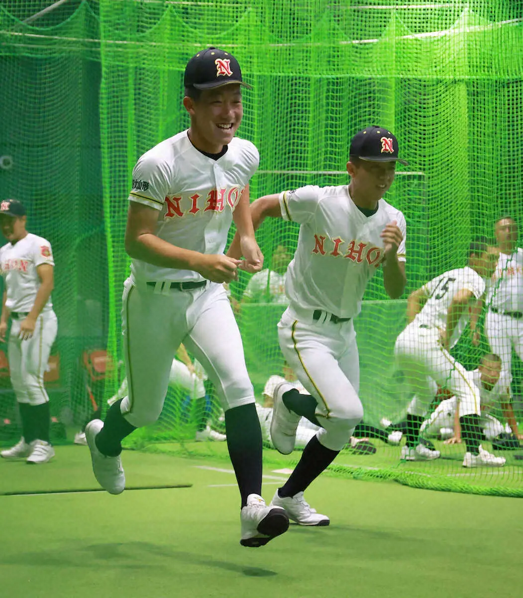 日大山形は悪天候での順延を受け、午前7時から甲子園室内練習場で約1時間30分、汗を流した。