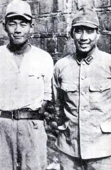 戦地での沢村栄治(左)と小川年安=阪神球団発行『阪神タイガース 昭和のあゆみ』より=
