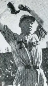 球団初のノーヒットノーランを記録した三輪八郎=阪神球団発行『阪神タイガース 昭和のあゆみ』より=