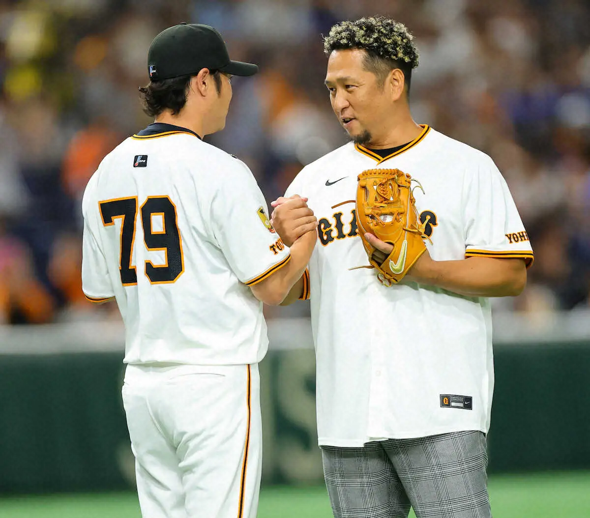 <巨・中(19)>中島宏之氏(右)に笑顔で花束を渡す坂本(撮影・松永 柊斗) Photo by スポニチ 巨人・丸佳浩「久々にナカジさんに会ってパワーをもらえたので打てました… ギャラリーで見る この記事のフォト 2025年08月13日の画像一覧 もっと見る 2025年08月13日の画像をもっと見る