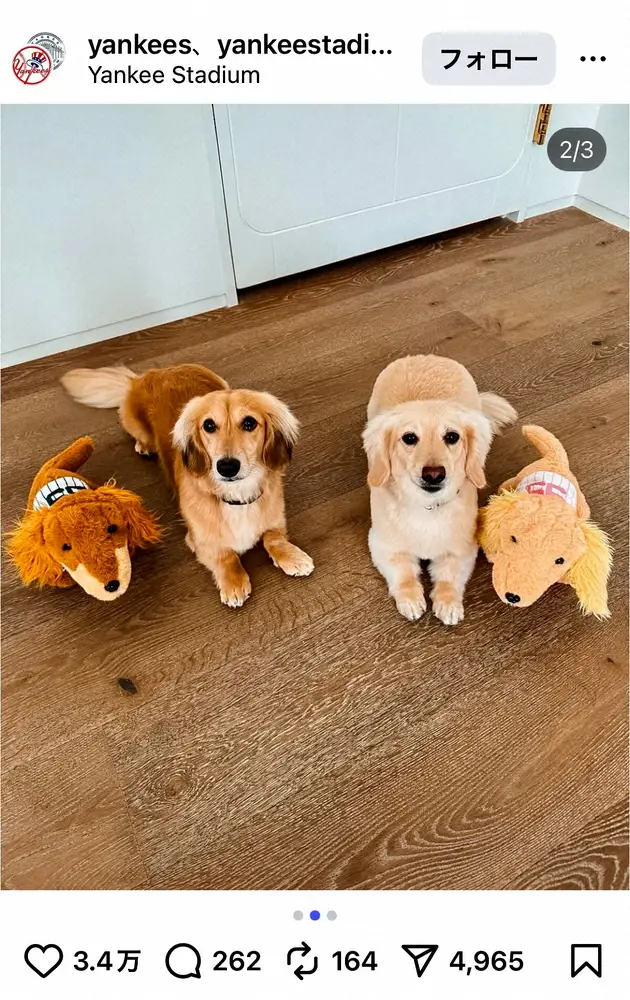 ヤンキースの球団公式インスタグラム(@yankees)から 「可愛い」「これを買う!」ヤンキースがジャッジ愛犬のぬいぐるみ発売 T… ギャラリーで見る この記事のフォト 2025年08月14日の画像一覧 もっと見る 2025年08月14日の画像をもっと見る