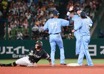 <西・ソ>9回、川瀬の中前打を捕ったモンテルが二塁へ送球、二塁をオーバーランしていた一走の嶺井がタッチアウト(撮影・篠原岳夫)