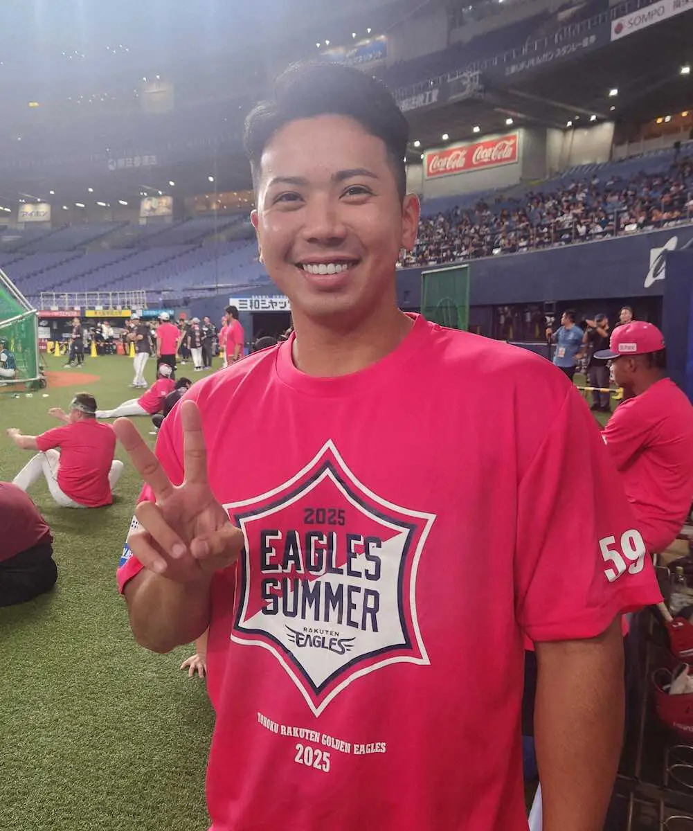 ◎高卒4年目で初の1軍昇格を果たした楽天・泰。練習の際に先輩を前に「僕も頑張りますんで、チームが勝てるように頑張りましょう!」とあいさつすると、則本から「お前はベテランか!」と突っ込み。21歳は「(内容を)考えてなくて…」と照れてました。