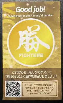 7月31日には、球場内の警備を担当する「北海道シミズ」の成田泰士さんが第1号でステッカーを手渡された。成田さんは、ファウルボールで持っていたうちわが壊れたファンを見つけ、すぐさま自主的に新しいものと取り換えたという。また、同日は球団公式チア「ファイターズガール」の上村優菜さんにも、グラウンドに落ちていたゴミを見つけて拾ったことでステッカーが贈られた。