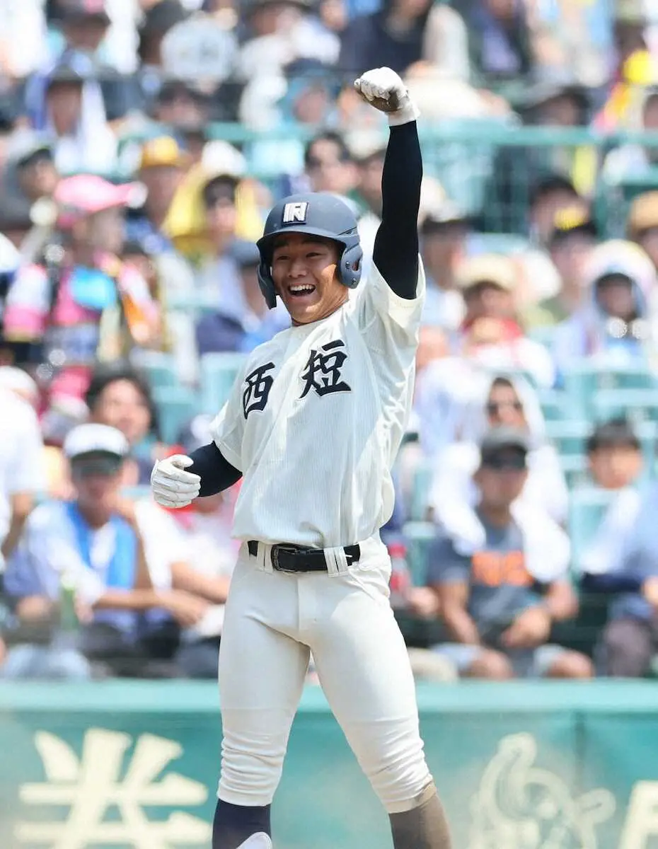<西日本短大付・聖隷クリストファー>8回、佐藤の適時二塁打で生還する西日本短大付・斉藤(撮影・五島 佑一郎) Photo by スポニチ 【甲子園】西日本短大付 競り勝って2年連続3回戦進出!8回に4番・佐藤仁… ギャラリーで見る この記事のフォト 2025年08月15日の画像一覧 もっと見る 2025年08月15日の画像をもっと見る