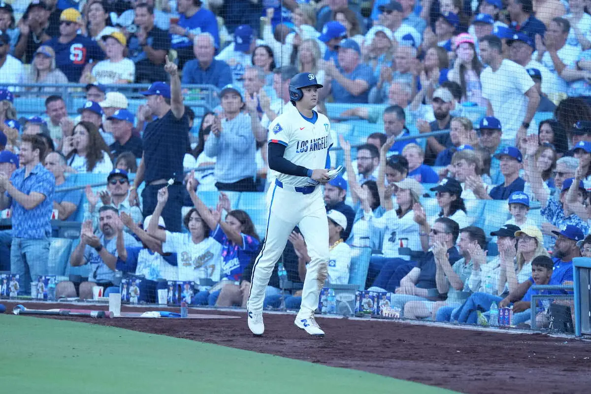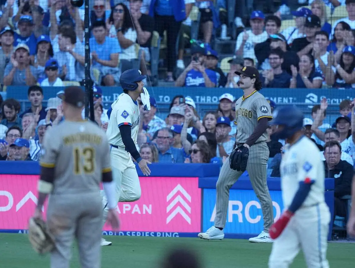 <ドジャース・パドレス>初回、ドジャース・コンフォートの右前適時打に喜ぶ大谷(左)(撮影・小海途 良幹) Photo by スポニチ 大谷翔平 第1打席は四球 T・ヘルナンデスの犠飛で先制ホーム 3点先制 … ギャラリーで見る この記事のフォト 2025年08月17日の画像一覧 もっと見る 2025年08月17日の画像をもっと見る