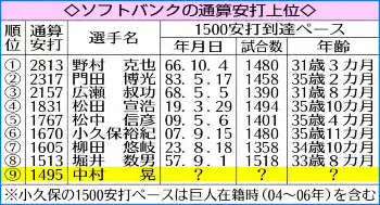 達成間近の記録 Photo by スポニチ ソフトバンク・中村 “スロー”に1500安打あと5 チーム9人目 ギャラリーで見る この記事のフォト 2025年08月19日の画像一覧 もっと見る 2025年08月19日の画像をもっと見る