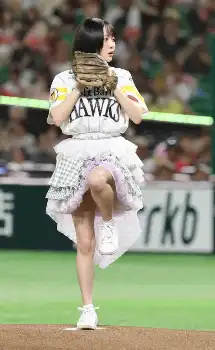 HKT48の市村愛里が“始球式” 「半袖天使」歌唱後に思い出のグラブでノーバン投球