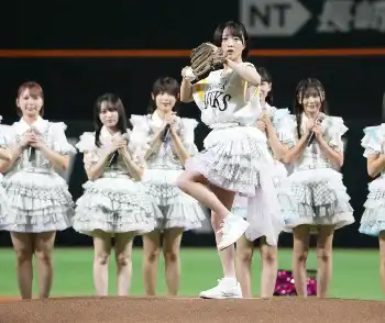 セレモニアルピッチを行うHKT48の市村愛(撮影・成瀬 徹) Photo by スポニチ HKT48の市村愛里が“始球式” 「半袖天使」歌唱後に思い出のグラブでノーバ… ギャラリーで見る この記事のフォト 2025年08月20日の画像一覧 もっと見る 2025年08月20日の画像をもっと見る