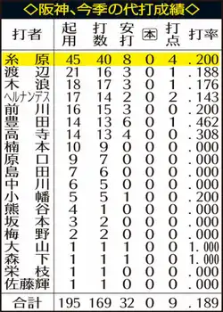 阪神・糸原健斗内野手(32)が19日、中日戦(京セラドーム)で同点の6回に代打で右前に決勝打を放った。6月13日楽天戦以来の安打が今季初の適時打になり、5―4で勝利に導いた。2軍落ちを経験した悔しさを晴らすとともに、チームの泣きどころである代打成功率向上に一役買った。若手中心の先発メンバーで臨み、最後はベテランが大仕事。貯金を今季最大26に増やし、優勝マジックも一つ減らして21とした。