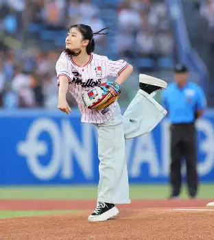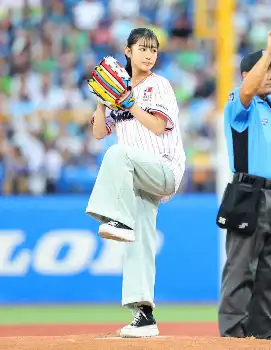 ヤクルトのトップスポンサーのオープンハウスグルーの冠協賛試合「応燕ハウスナイター」として開催された20日のヤクルト―巨人戦(神宮)で、同社のテレビCMに出演しているモデルで俳優の藤本唯千夏(いちか=14)が始球式を務めた。