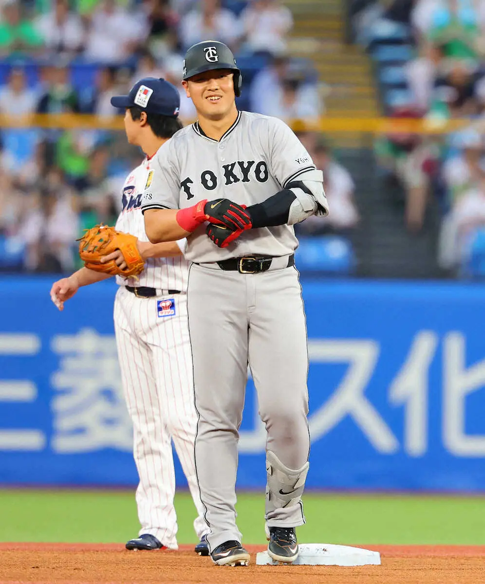 <ヤ・巨>初回、先制の適時二塁打を放つ岡本(撮影・光山 貴大) Photo by スポニチ 巨人・岡本和真 田中将大に日米通算199勝目を!初回に三塁線切り裂く先制… ギャラリーで見る この記事のフォト 2025年08月21日の画像一覧 もっと見る 2025年08月21日の画像をもっと見る