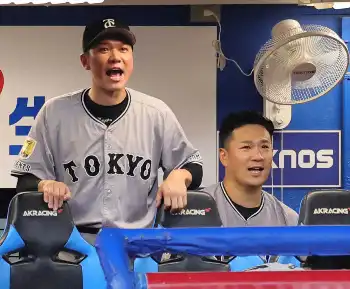 <ヤ・巨>笑顔でナインを鼓舞する坂本(左)と田中将大(撮影・尾崎 有希)