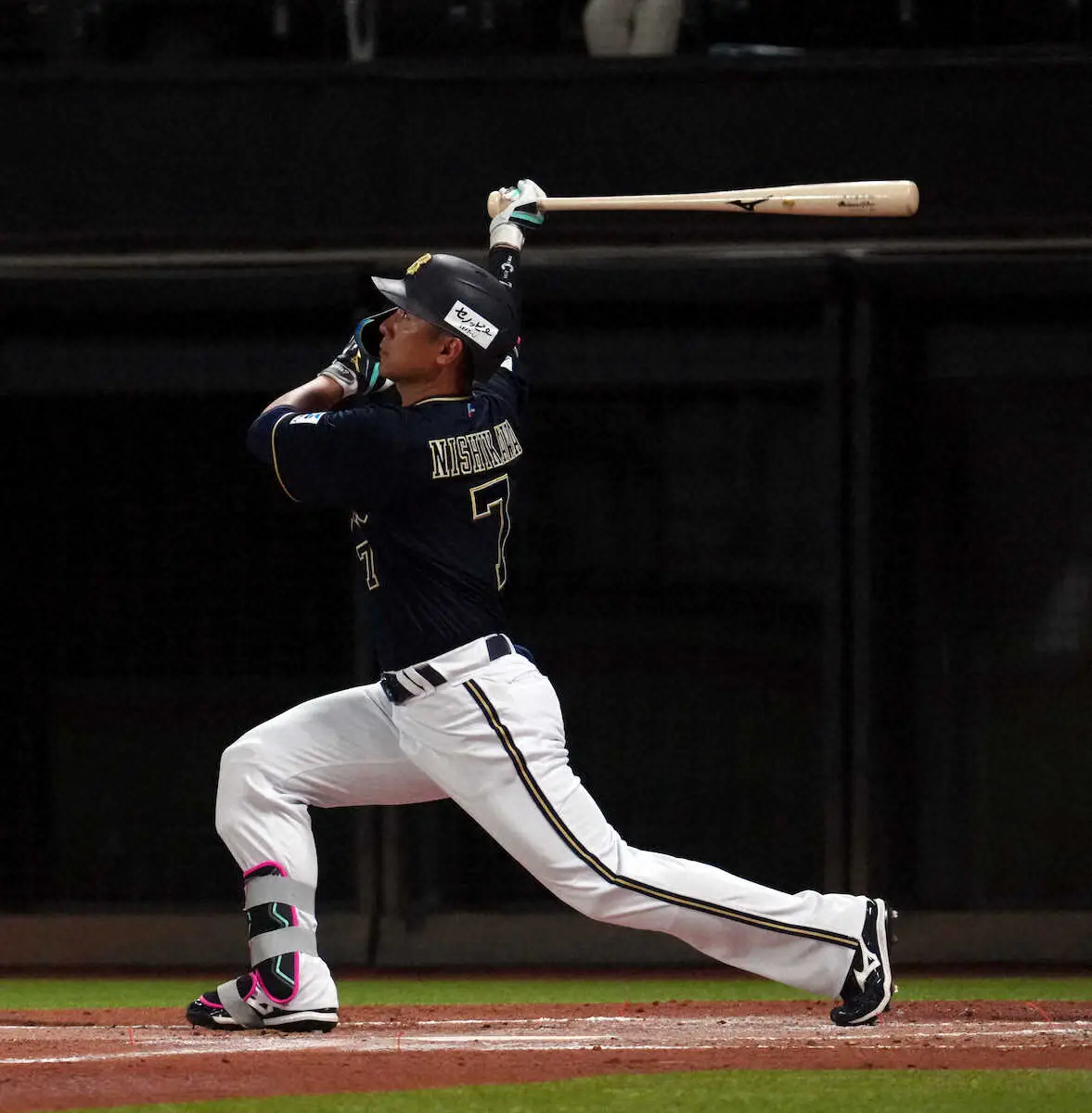 来たるべき時に打つ、それがオリックス・西川龍馬という男だ。2回に3点を先行し、なおも2死一、二塁。バーヘイゲンの初球149キロを一振りで仕留め、確信した。左足首の故障から復帰後初の一発となる右越え3ラン。19年6月23日広島戦の延長10回に9得点を挙げて以来、6年ぶりとなる1イニング8得点を演出した。