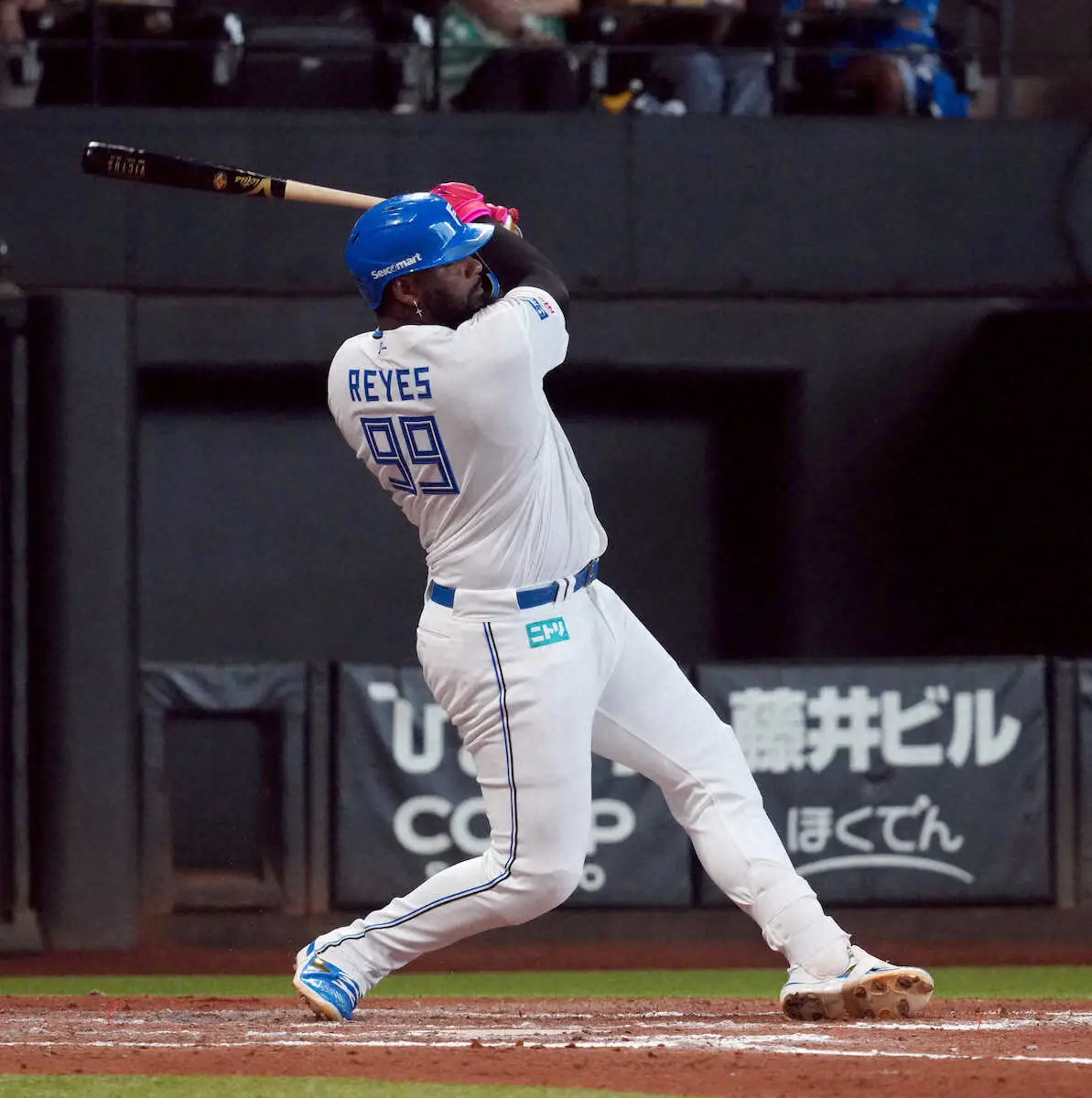 日本ハムのフランミル・レイエス外野手(30)は23日、ソフトバンクとの首位決戦第2ラウンドで2回に決勝となる左越えの先制26号ソロを放つと、7回にもバックスクリーンへ27号ソロを叩き込んだ。今季2度目の1試合2発で、宿敵に2連勝し、2位のチームも1・5ゲーム差と肉薄。24日の第3ラウンドはエース・伊藤大海投手(27)が3連勝を目指してモイネロとの投げ合いに挑む。