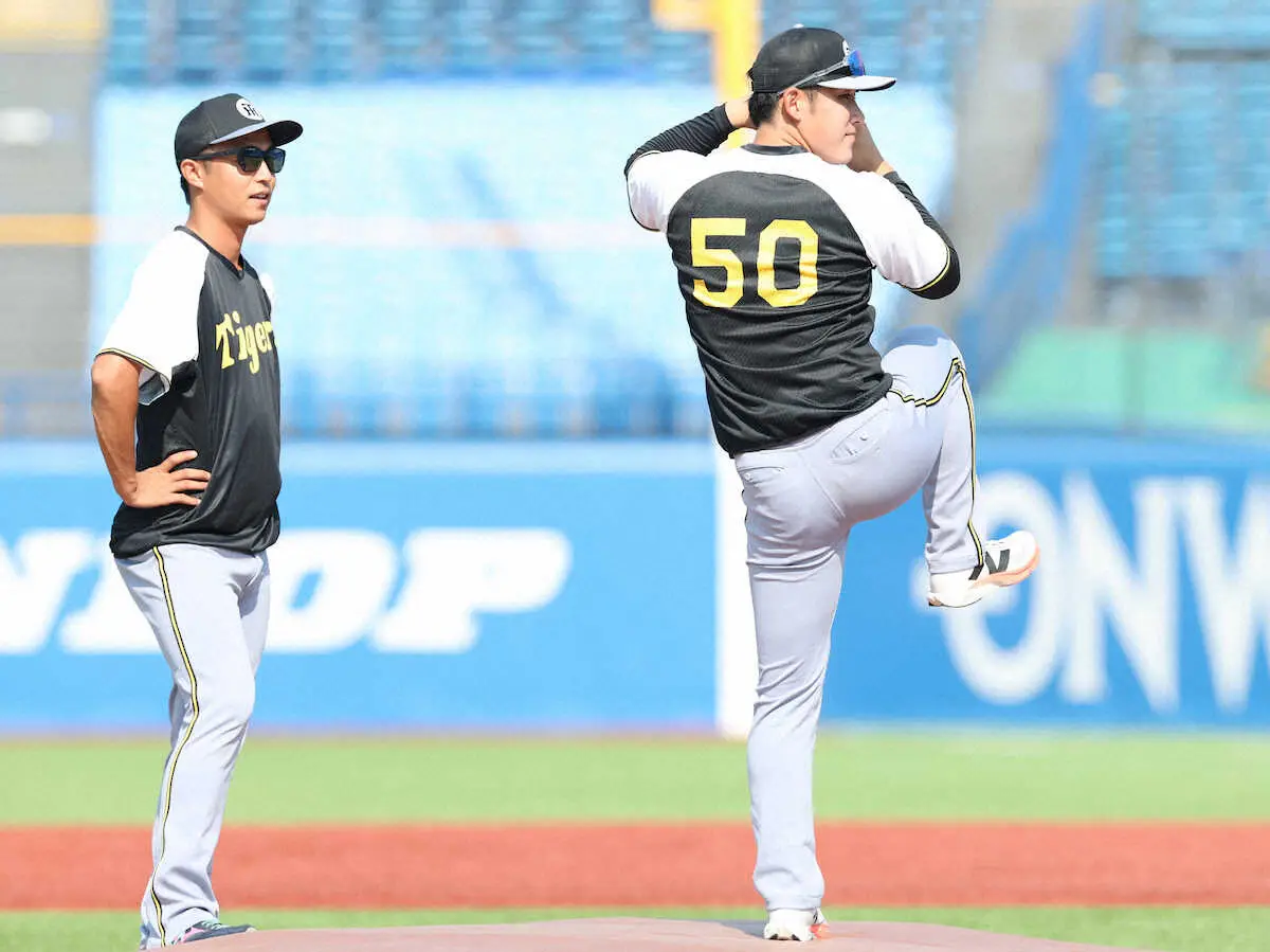 阪神の島本浩也投手、富田蓮投手が24日のヤクルト戦前の練習に合流した。阪神は前日23日のヤクルト戦で、石井大智投手以外の中継ぎ7投手が登板した。