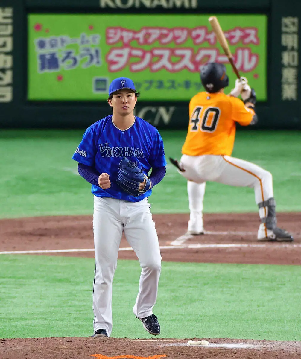 岡本斬りで流れをつかんだ。2―0の4回無死一塁。前日の2打席連続本塁打など、3試合連続決勝打を放っていた相手の4番・岡本を、初球147キロ直球で遊ゴロ併殺に仕留めた。「日本を代表する打者で凄く怖かった」と言いながらもグラブを強く叩いた。5回はリチャードにソロを浴びさらに2死満塁でも、丸をスライダーで一ゴロ。岡本を3打数無安打、丸を2打数無安打と3、4番を封じた右腕を三浦監督は「直球も強かったし制球も非常に良かった」と称えた。