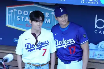 大谷にVの“使者”が来た! 「BTS」Vが始球式→ドジャース連勝で単独首位返り咲きM29