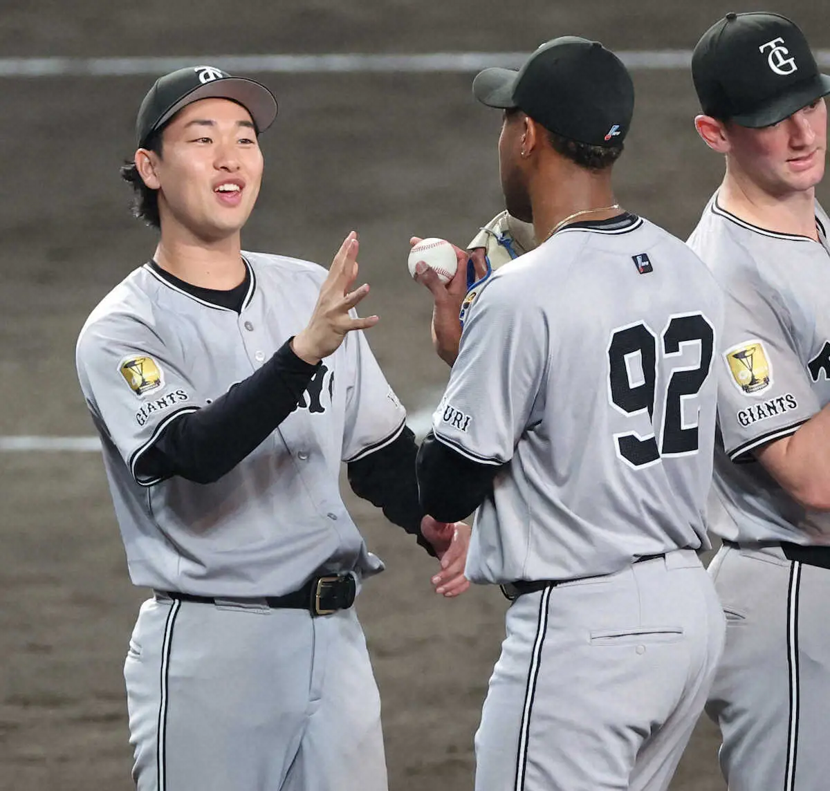 <神・巨>阪神に勝利し、ハイタッチをするマルティネス(右から2人目)ら (撮影・平嶋 理子) Photo by スポニチ 巨人マルティネス久々!12試合ぶり登板で今季35セーブ目 G党待ってた!通… ギャラリーで見る この記事のフォト 2025年08月29日の画像一覧 もっと見る 2025年08月29日の画像をもっと見る