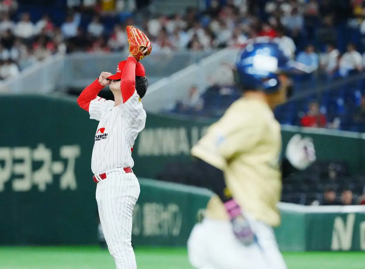 <三菱重工East・NTT西日本>9回、NTT西日本・北條に2ランを浴びた三菱重工East・野中(撮影・五島 佑一郎)
