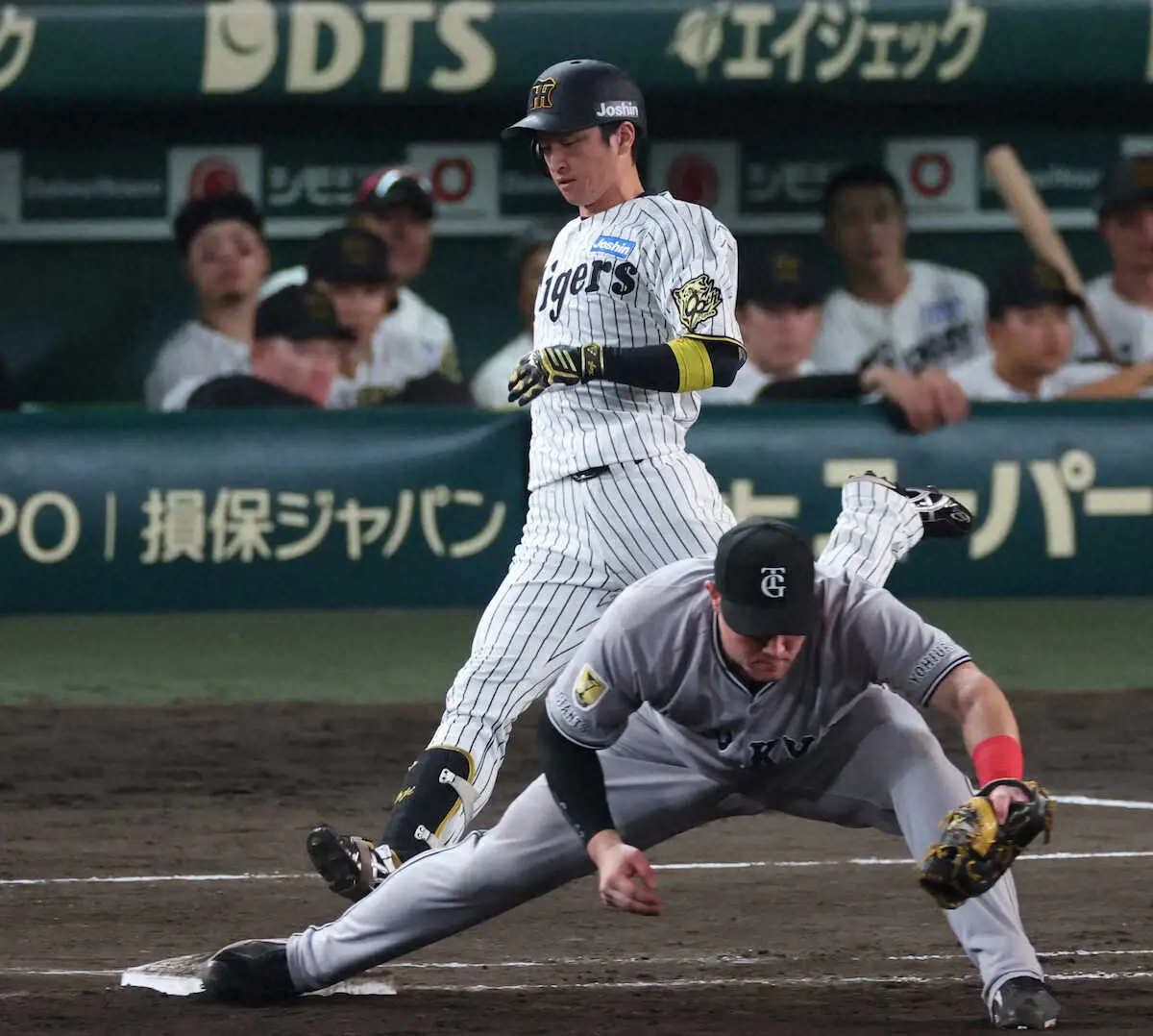 阪神・近本は不運の連続で、自己ワーストを更新中の連続無安打が6試合、30打席に伸びた。5回、同点に追いついてなおも1死満塁で放ったライナーは、二塁・吉川の美技に阻まれて併殺。9回は中堅に抜けようかという打球を泉口にさばかれ、遊ゴロに終わった。