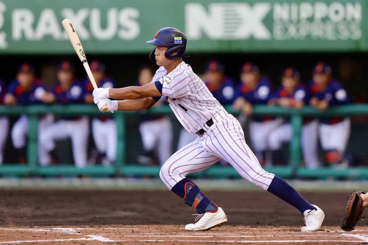 U18侍・阿部主将 木製バット対応し大学生から2安打!侍・井端監督も評価「見劣りしない」