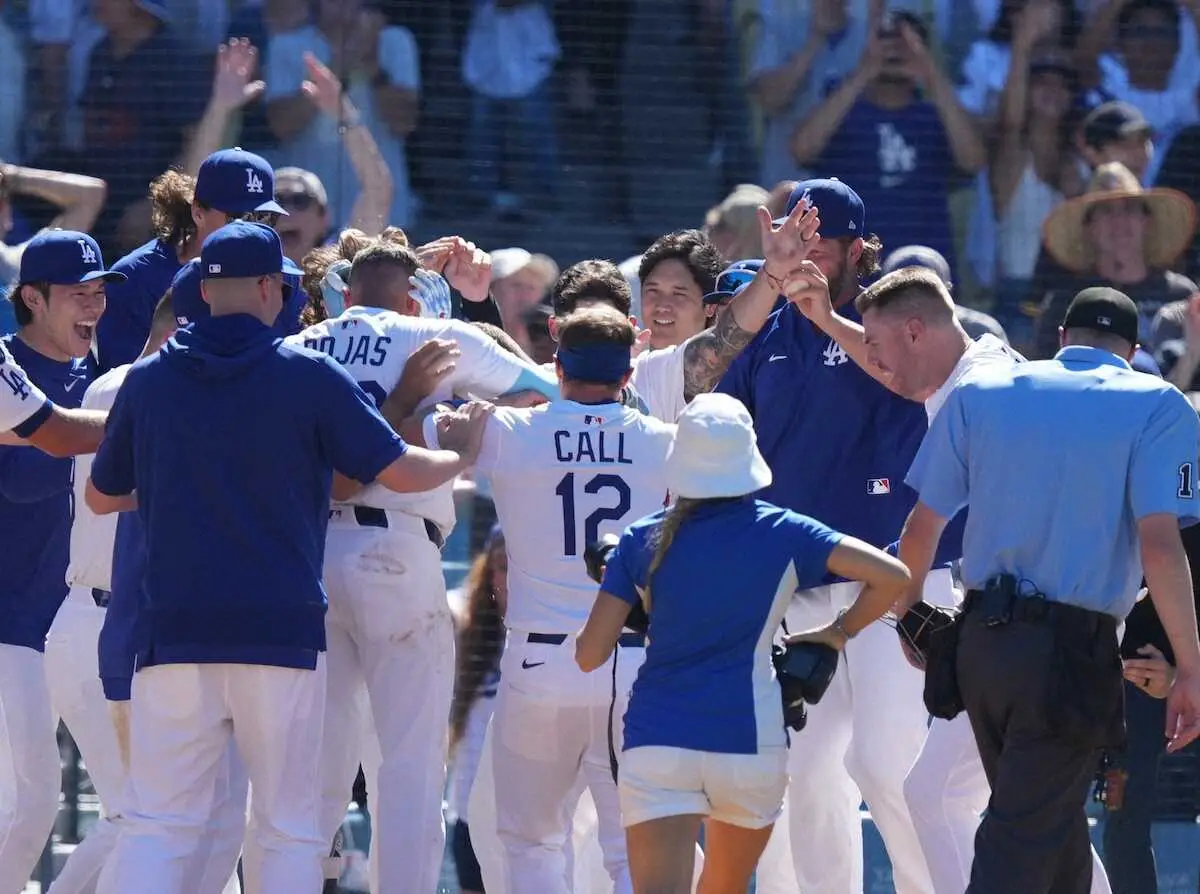 ドジャースの大谷翔平投手(31)は8月31日(日本時間9月1日)、本拠でのダイヤモンドバックス戦に「1番・DH」で先発出場。第1打席で2試合ぶりとなる安打を放った。試合は3点リードの8回に同点に追いつかれたが、9回に代打ウィル・スミス捕手がサヨナラ弾を放って連敗を2でストップ。試合に敗れた2位パドレスとのゲーム差を2に広げ、地区優勝マジックを23に減らした。山本由伸投手は7回4安打1失点、自己最多タイ10奪三振も12勝目はお預けとなった。