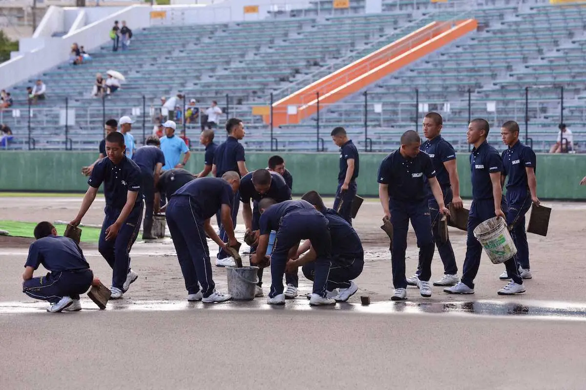 【侍U18】俺たちの末吉と新垣を投げさせる!沖縄尚学が降雨後のグラウンド整備 開始は30分遅延