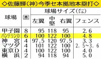同球場では05年に金本知憲がマークした球団最多のシーズン6本塁打に並んだ。ビジター球団の記録は00年に松井秀喜が記録した8本。残り2試合もあるなら可能な数字だ。両リーグを独走する35本塁打、86打点。この夜で121試合を消化し05年の金本知憲以来となる「40」の大台にも“マジック”「5」とした。