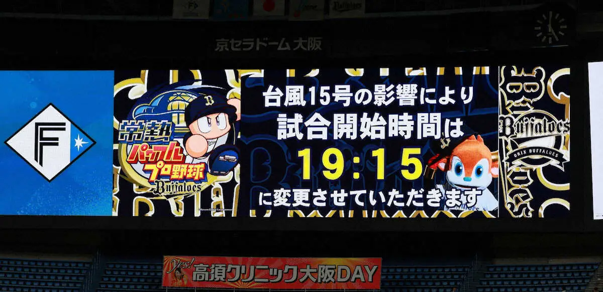 京セラドームで行われる予定の日本ハムオリックスは、試合開始が午後7時30分になることが発表された。いったんは午後7時15分と発表されたが、さらに15分遅れることになった。