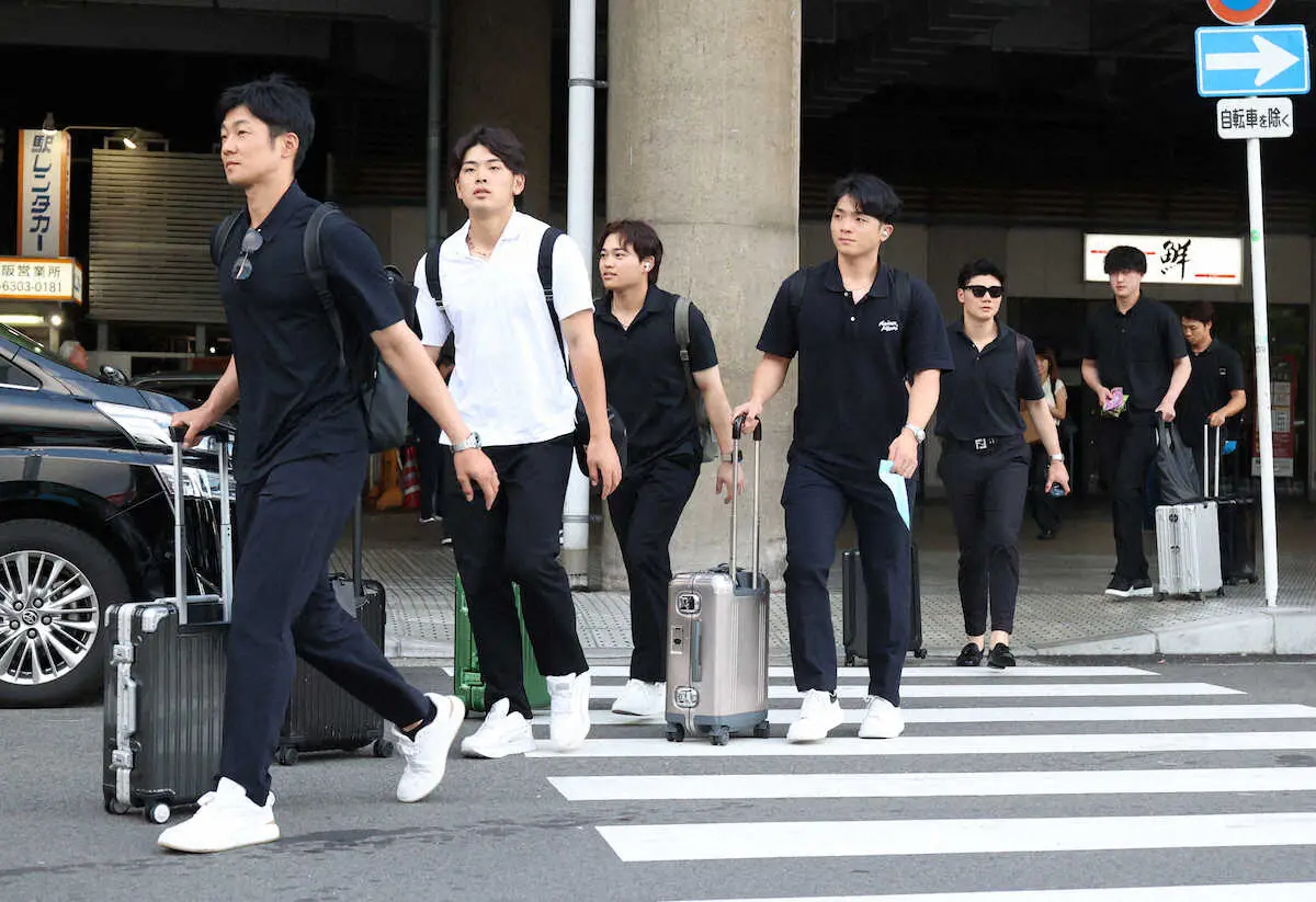 新大阪駅に到着し、バスへと向かう日本ハムの選手ら(撮影・須田 麻祐子)