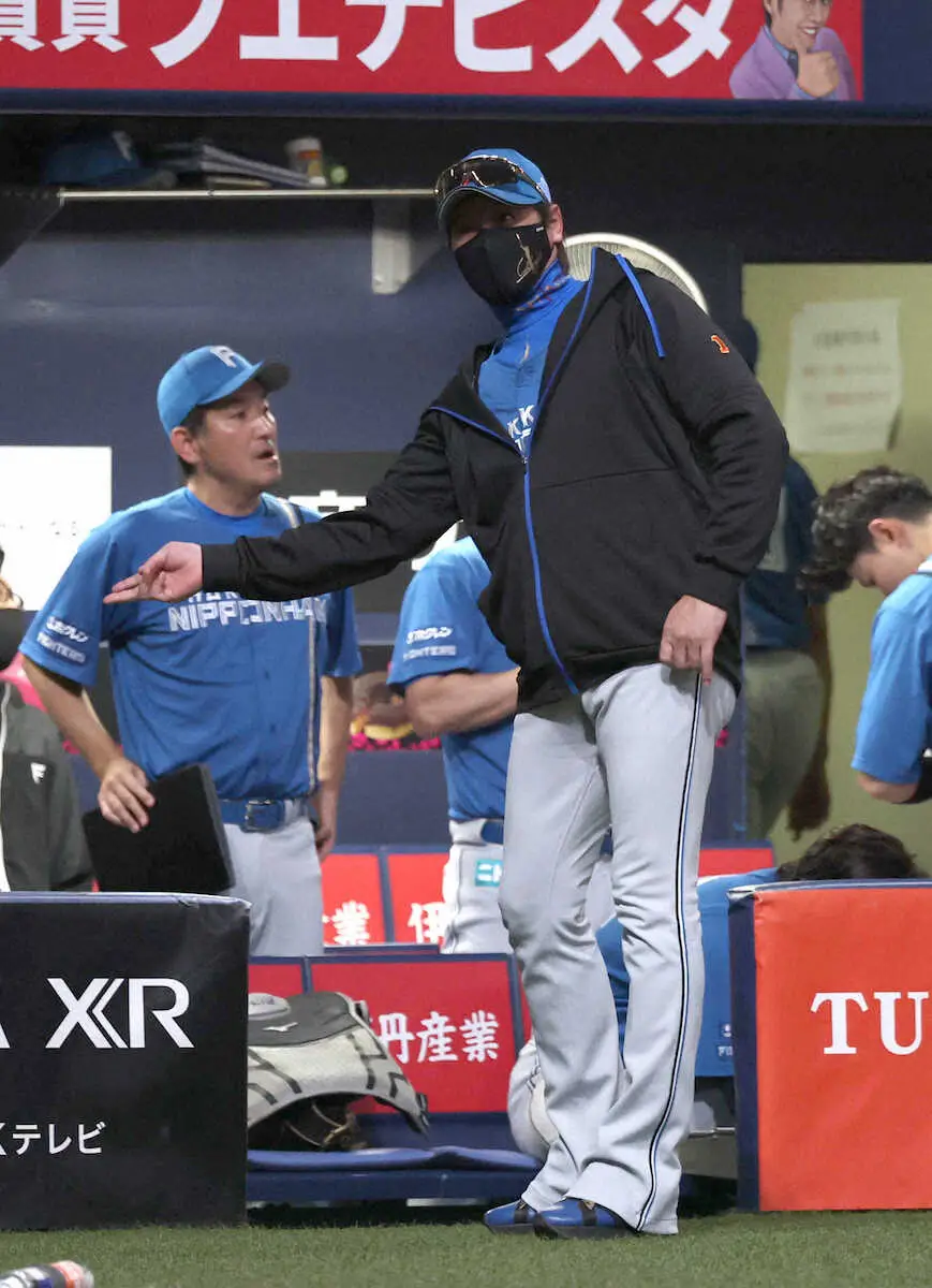 <オ・日23>7回、選手交代を告げる新庄監督(撮影・後藤 正志)