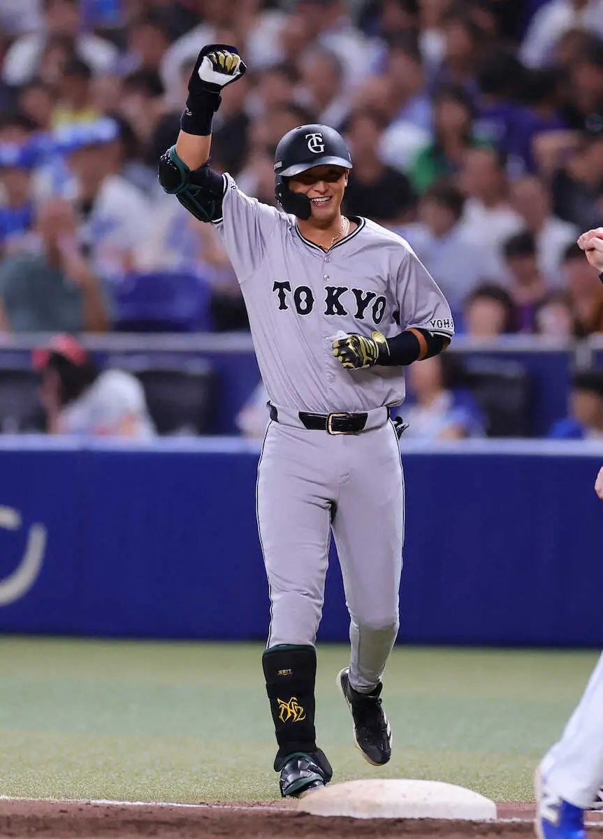 9回、中日の守護神・松山を攻略し、2死から岡本の左前打などで満塁とすると、代打・坂本が値千金の中前適時打を放って同点。続く吉川が二塁への適時内野安打で勝ち越した。