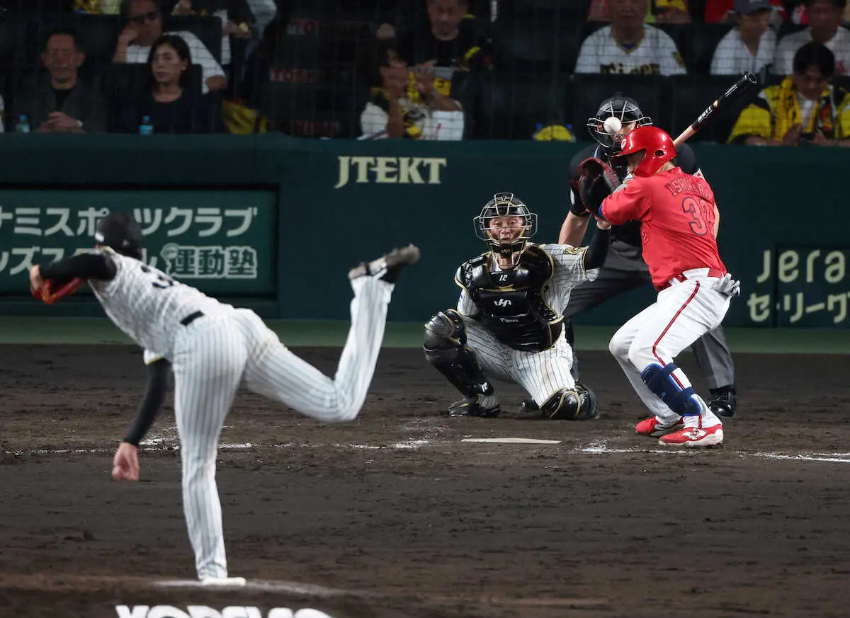 才木は4回まで3安打無失点と好投していたが、5回先頭の石原に対して投じた149キロの直球が抜け、ヘルメットを直撃。危険球で退場を宣告されていた。