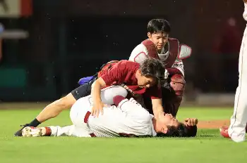 担架も用意されたが、内は自身で歩いてベンチへ。治療後に続投し、後続を抑えた。