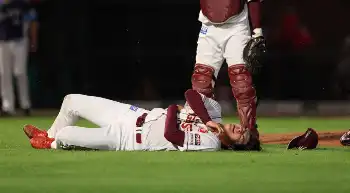 「(打球速度)169キロのデッドボールを受けたようなものだったけど、大丈夫」と内。次回も予定通りに先発する見込みだ。