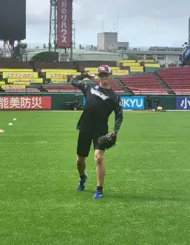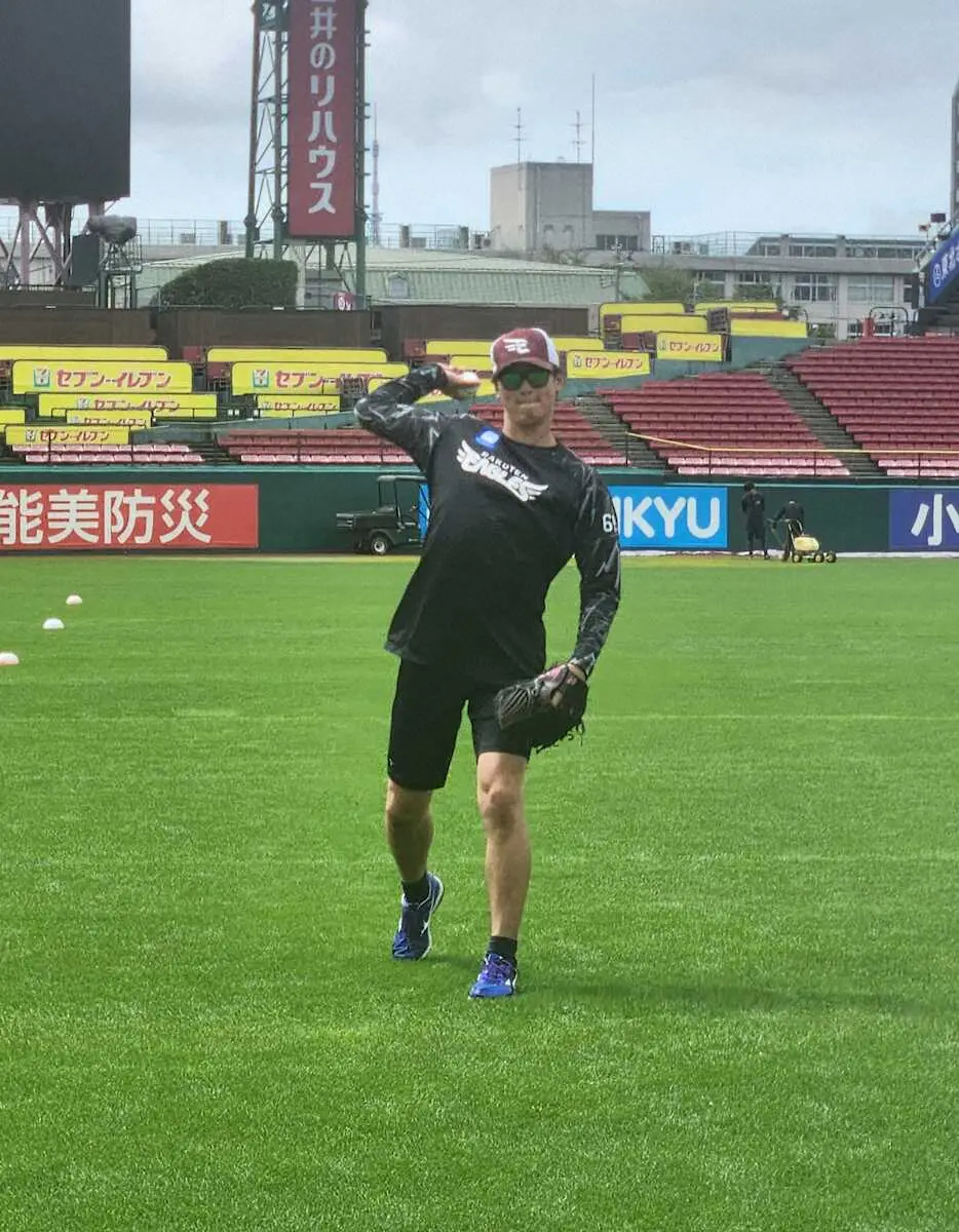 明るい表情でキャッチボールなどを行い「痛みはあるけど許容範囲。キャッチボールも問題なかった」と話した。