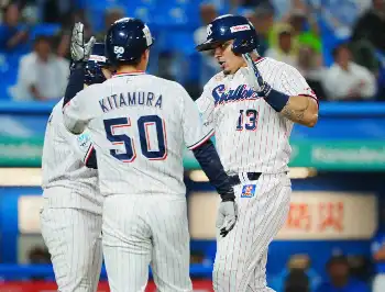 <ヤ・中22>5回、満塁弾を放ち北村恵(50)らとタッチを交わすオスナ(撮影・五島 佑一郎) Photo by スポニチ ヤクルト・オスナ“3度目の正直”満塁弾!! 大ファウル2本後に左翼席にグ… ギャラリーで見る この記事のフォト 2025年09月11日の画像一覧 もっと見る 2025年09月11日の画像をもっと見る