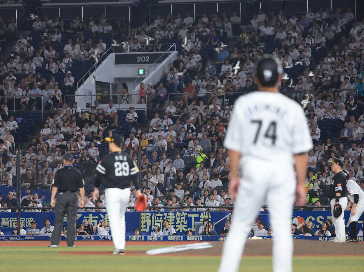 <ロ・ソ>6回途中、鳥の大群が球場に飛来する (撮影・西川祐介) Photo by スポニチ マリン騒然!鳥の大群襲来で試合一時中断のハプニング ネットに当たり落… ギャラリーで見る この記事のフォト 2025年09月11日の画像一覧 もっと見る 2025年09月11日の画像をもっと見る