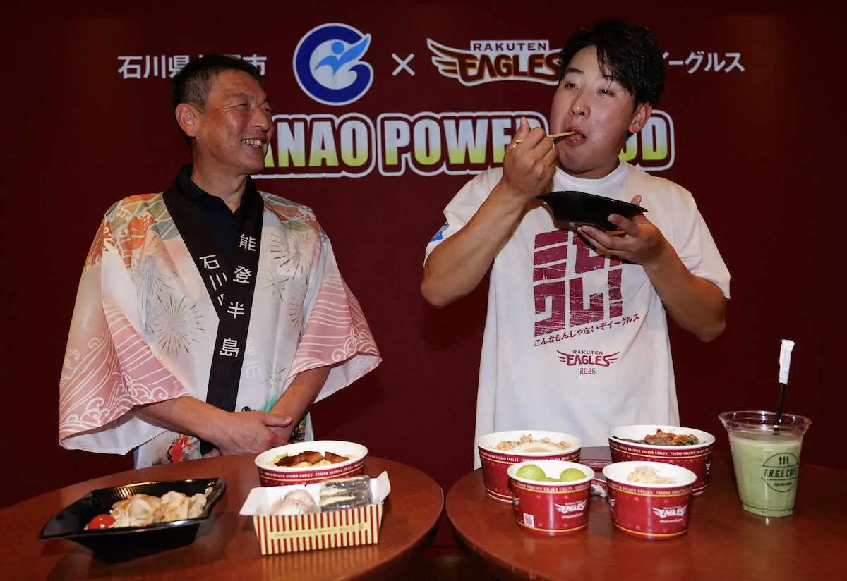 <楽・ロ>「NANAO POWER FOOD」発表会に登場した藤平はわくたまくんと一緒に石川県七尾市の味と魅力をPR(撮影・長久保 豊) Photo by スポニチ 楽天が石川県七尾市とコラボメニューを販売 藤平が絶品ご飯試食「本当に… ギャラリーで見る この記事のフォト 2025年09月13日の画像一覧 もっと見る 2025年09月13日の画像をもっと見る