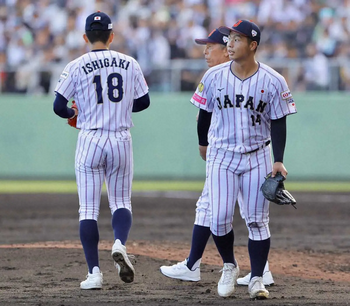 <日本・米国>4回、アメリカに先制を許し、肩を落とす末吉(撮影・松永 柊斗) Photo by スポニチ 【U18W杯】日本連覇ならず 末吉、石垣のスーパーリレーも…打線1点遠く … ギャラリーで見る この記事のフォト 2025年09月14日の画像一覧 もっと見る 2025年09月14日の画像をもっと見る