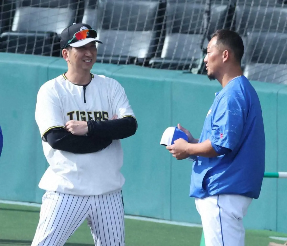 <神・中>あいさつを交わし中田(左)にサムズアップを贈る藤川監督(撮影・後藤 正志) Photo by スポニチ 阪神・藤川監督 今季限りで引退の中田をねぎらう 日本ハム時代から「翔… ギャラリーで見る この記事のフォト 2025年09月14日の画像一覧 もっと見る 2025年09月14日の画像をもっと見る