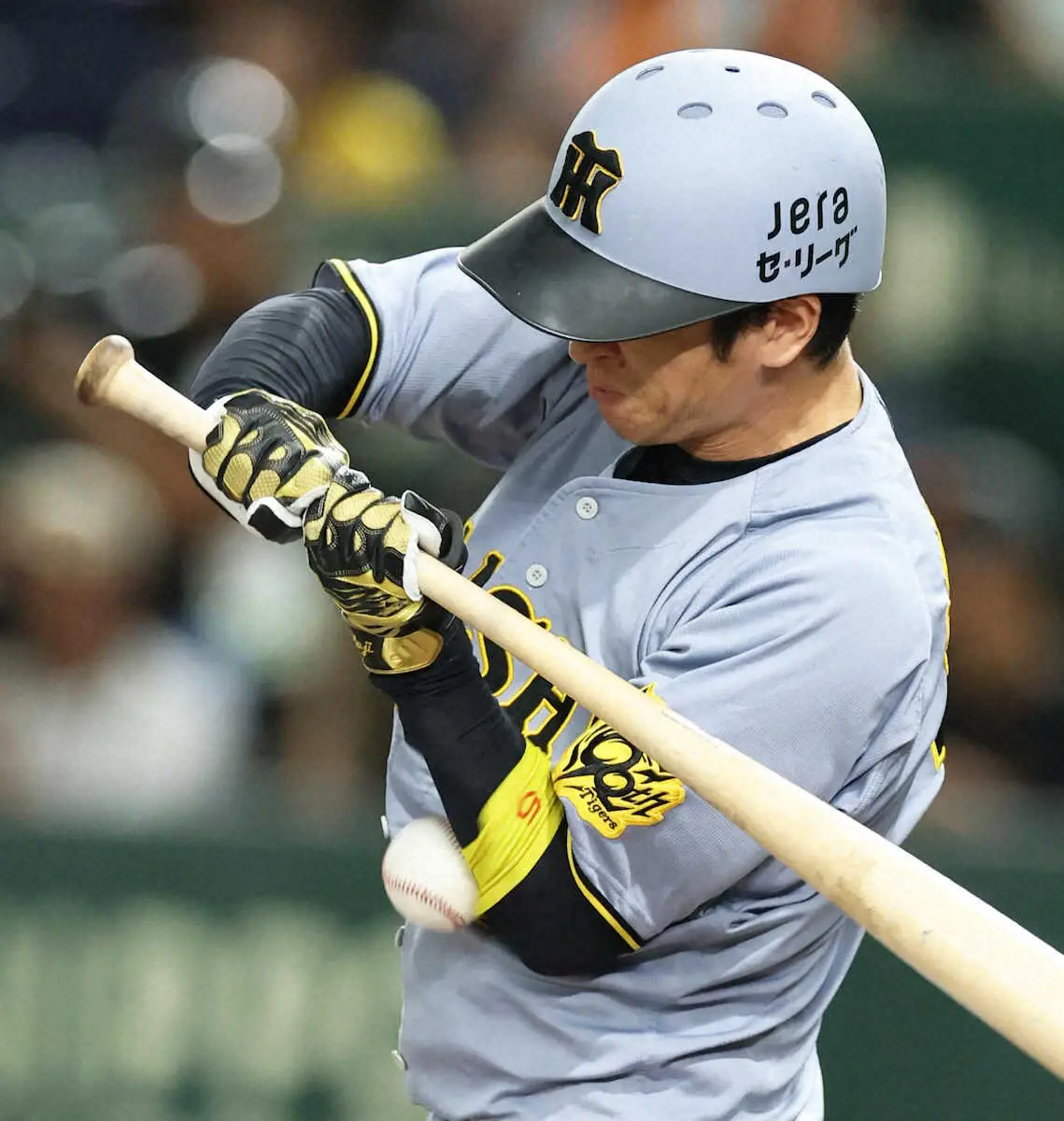 阪神 近本の状態について球団トレーナー発表「打撲。骨折ではない」13日巨人戦で左前腕に死球を受け交代