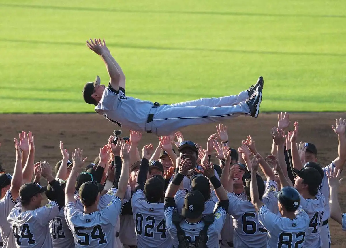 <イースタン 西・巨>リーグ優勝を決め胴上げされた桑田2軍監督は西武ベンチに向かって会釈する(撮影・沢田 明徳) Photo by スポニチ 巨人・桑田2軍監督、野球哲学に沿った胴上げは3回だけ 「いつも“量より質… ギャラリーで見る この記事のフォト 2025年09月16日の画像一覧 もっと見る 2025年09月16日の画像をもっと見る