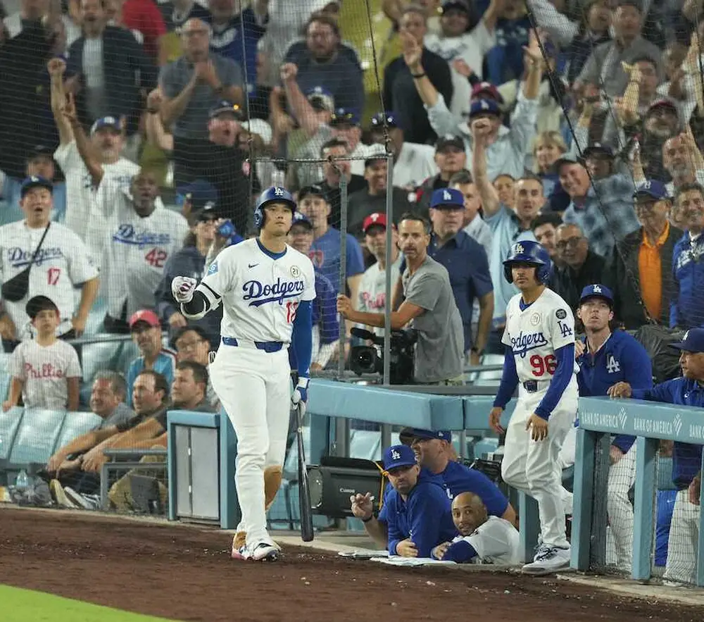 ドジャースの大谷翔平投手(31)が15日(日本時間16日)、本拠でのフィリーズ戦に「1番・DH」で先発出場。同点で迎えた9回の第5打席は四球を選んで出塁した。